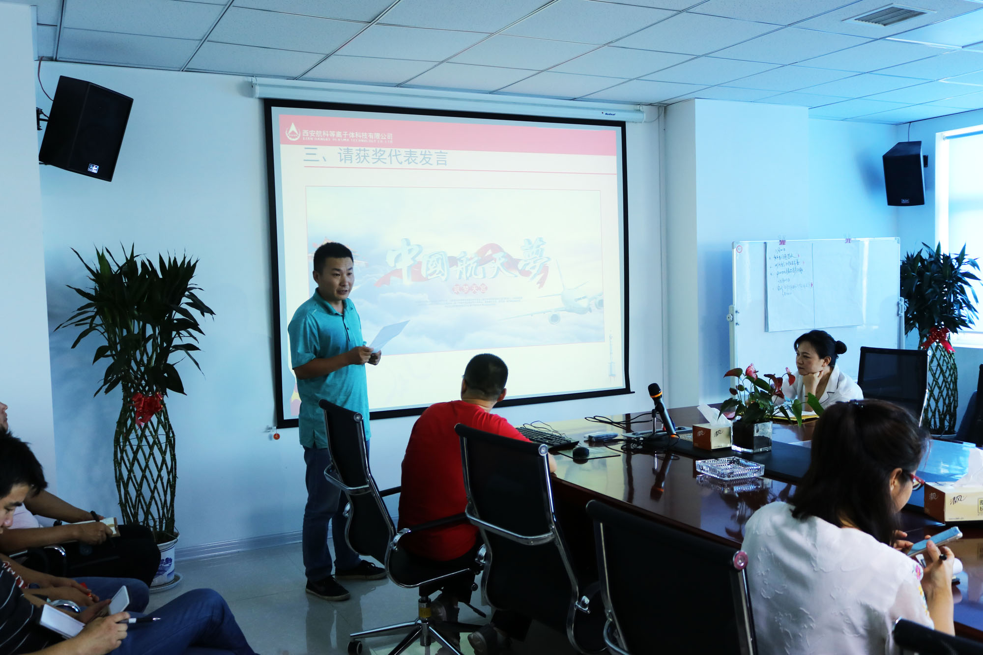 生產(chǎn)管理部部長(zhǎng)王成林作為獲獎(jiǎng)代表進(jìn)行了發(fā)言:他代表獲獎(jiǎng)人員感謝公司對(duì)項(xiàng)目組織過(guò)程中所有參與員工的付出的肯定。他強(qiáng)調(diào):選擇航科是正確的,在這個(gè)平臺(tái)上,我們不僅共同學(xué)習(xí),還將共同攜手,共同努力,共同奮斗,共享成功的喜悅。