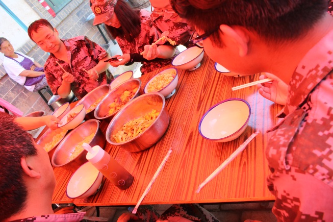 到了中午,我們下廚房自己做飯,有的洗菜,有的切菜,張工、趙部長毫不猶豫的擔(dān)任了各自團(tuán)隊(duì)大廚的角色,大家即使已經(jīng)筋疲力盡,但還是沉浸在了烹飪的歡樂當(dāng)中。